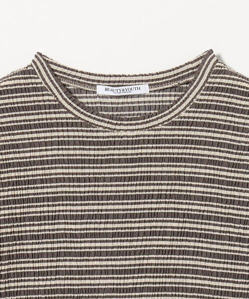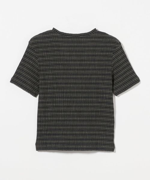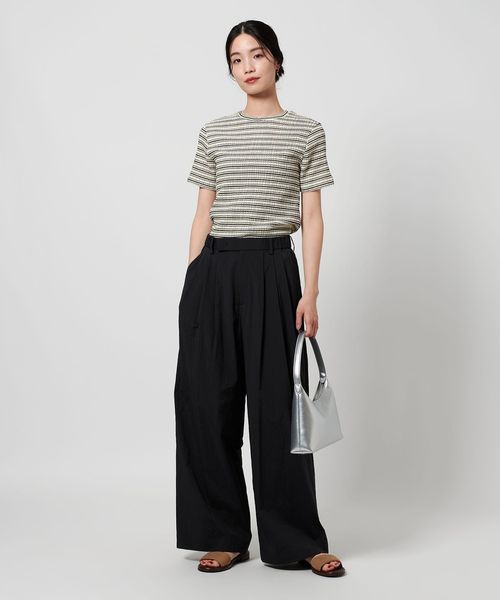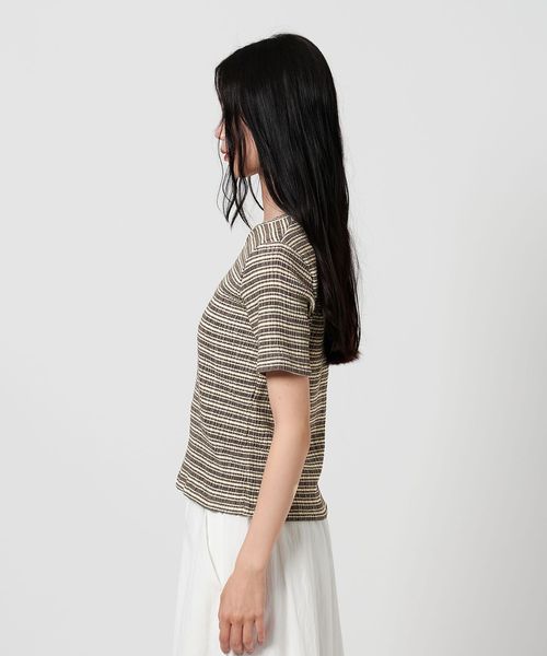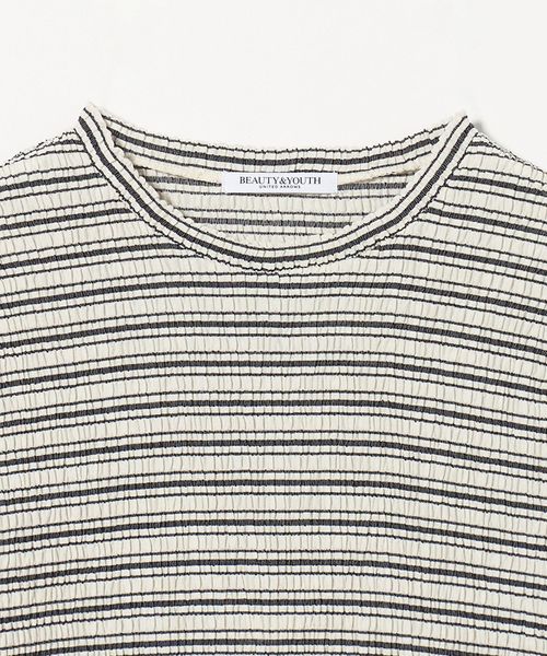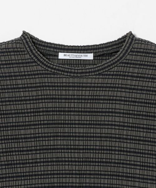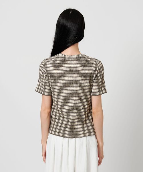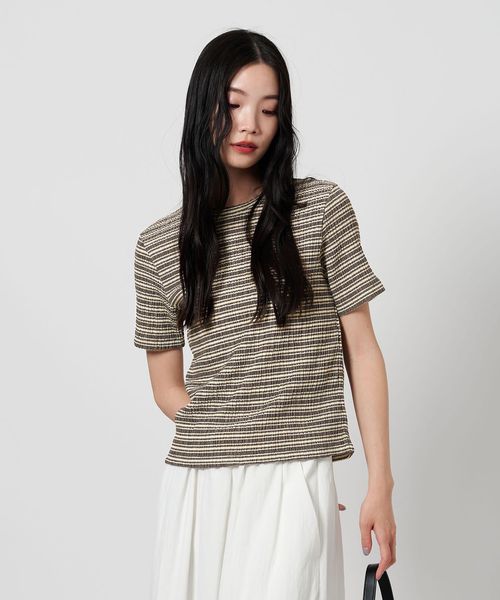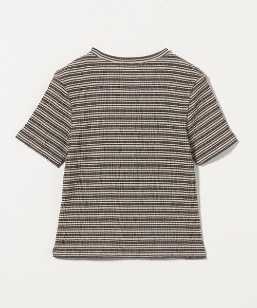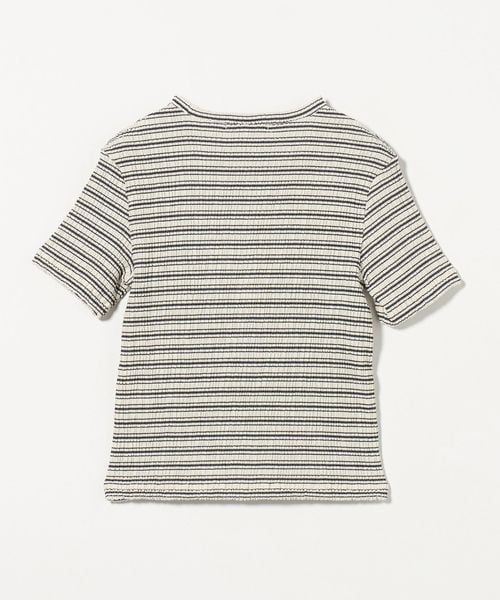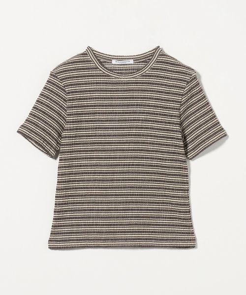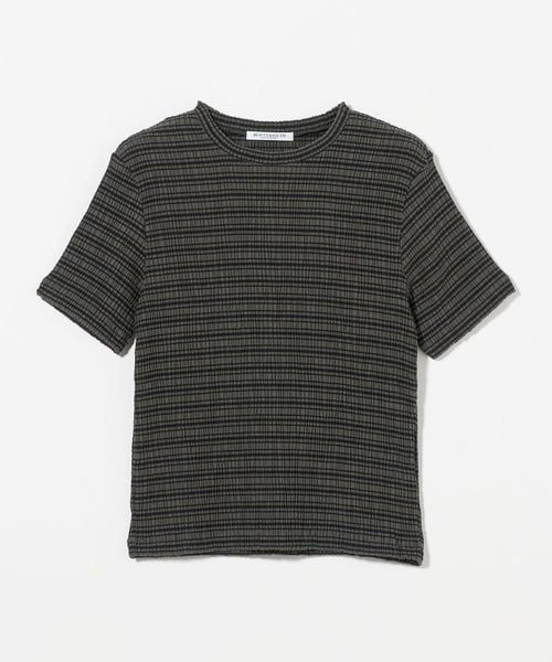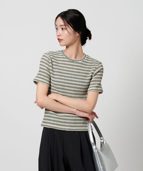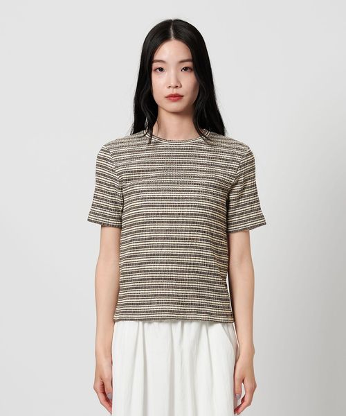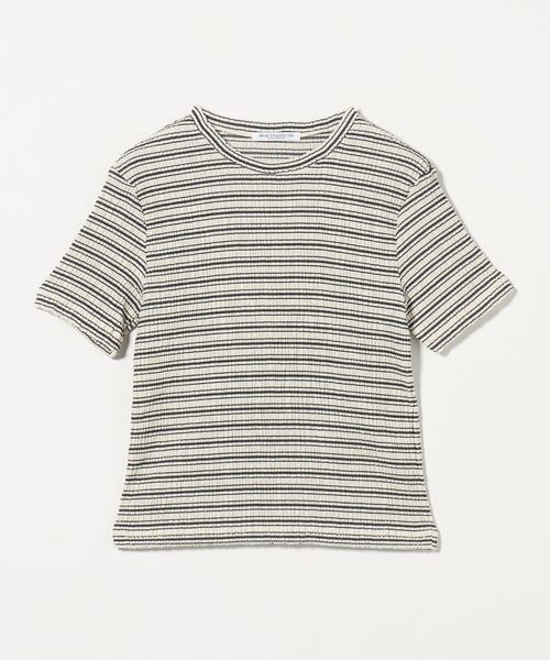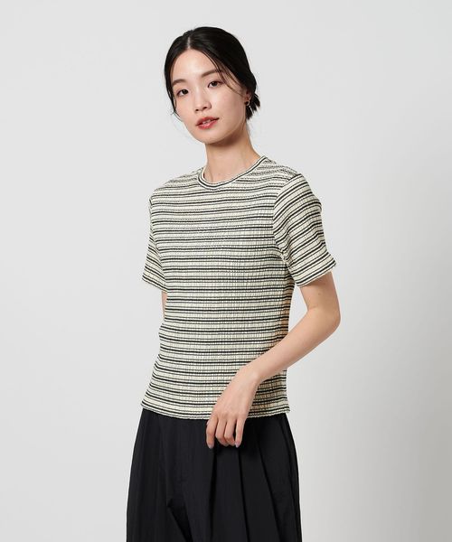 凹凸のある表面感が目を引く、ボーダー柄クルーネックTシャツ。