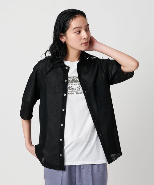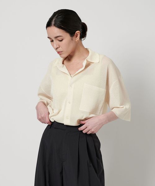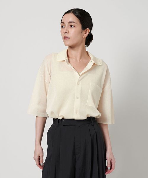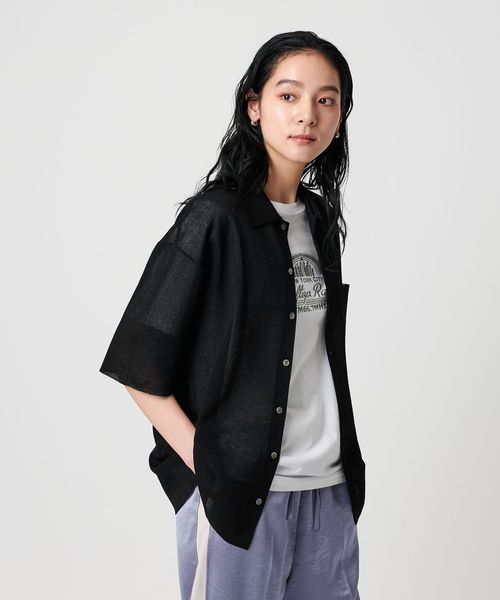 涼しげな透け感のシャツ型カーディガンに半袖が登場