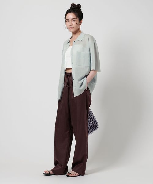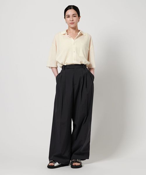 ワイドパンツを合わせて、旬の雰囲気で着こなすのがおすすめです。