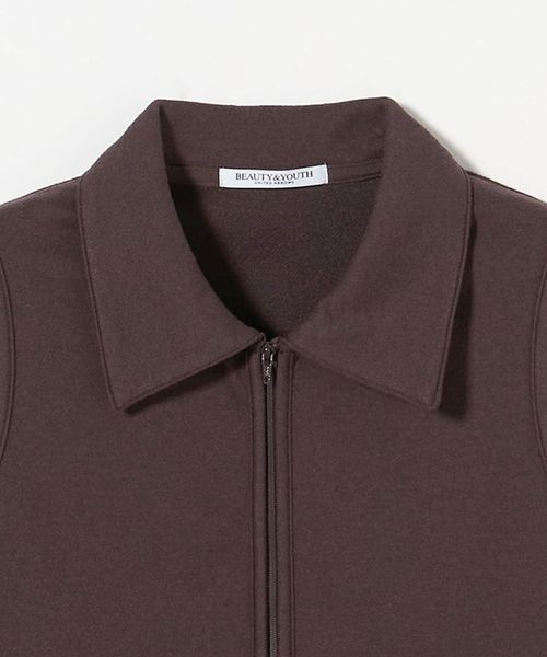 シャープな印象を演出する襟付きジップが着映えするデザイントップスです。