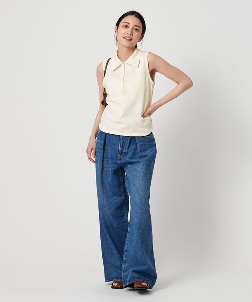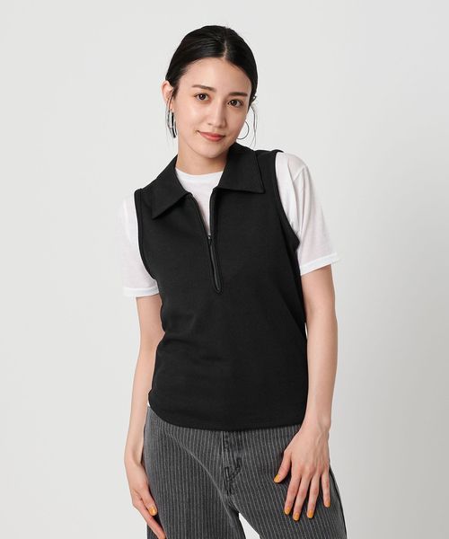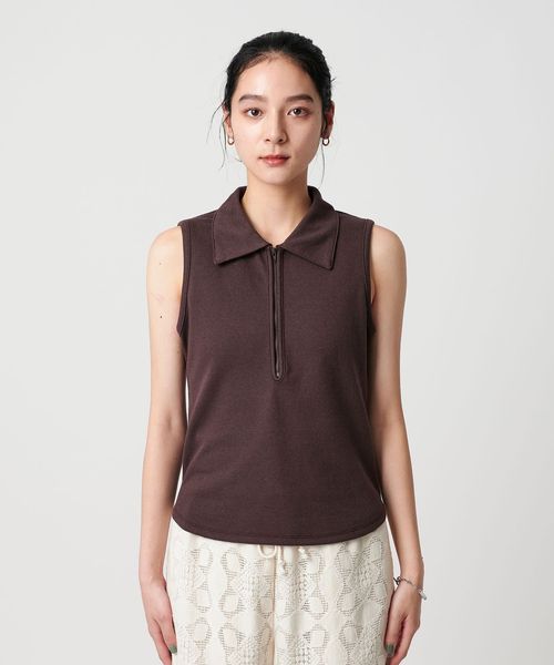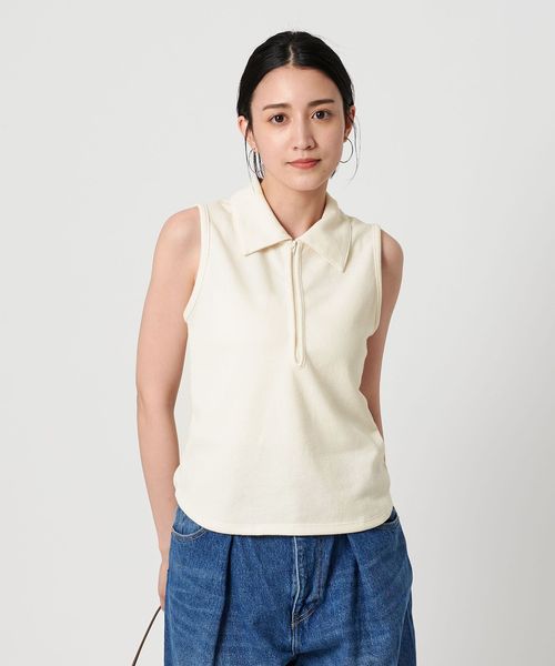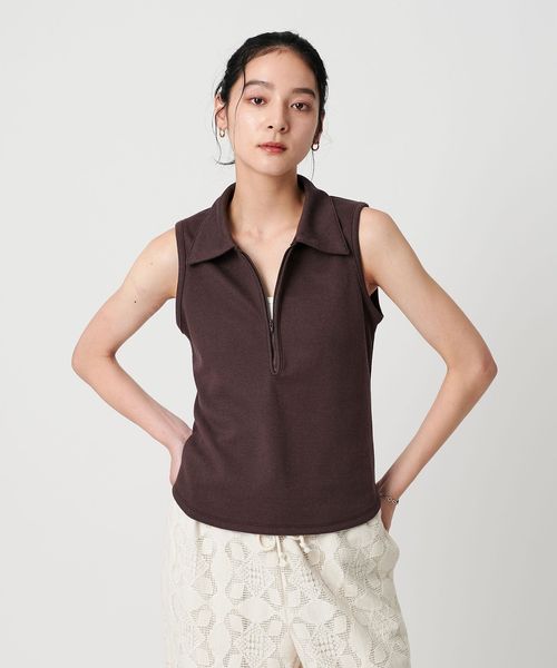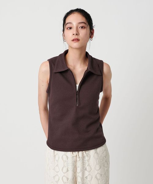 一枚でも様になるハーフジップが魅力のノースリーブ