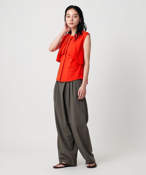 ブラウスライクなきれいめなカット素材が、甘くなりすぎず大人の愛らしい表情に導いてくれます。