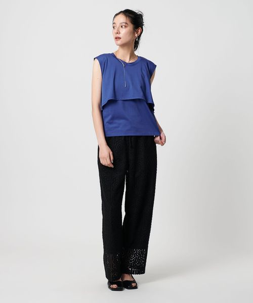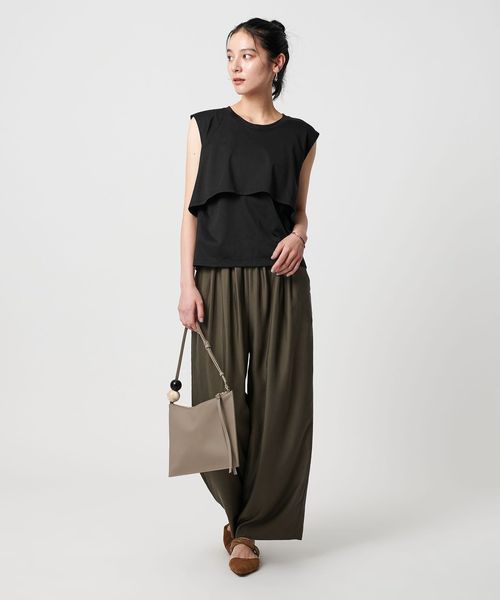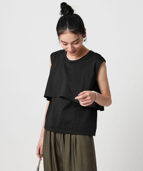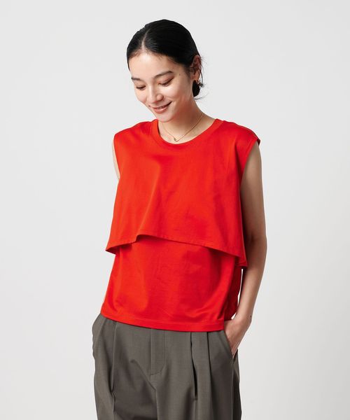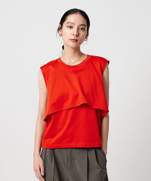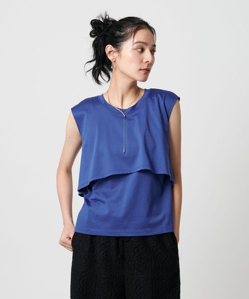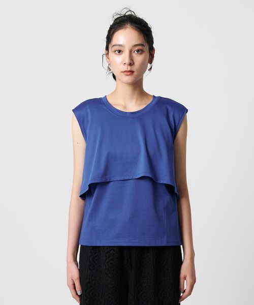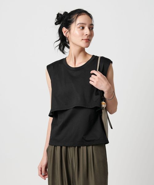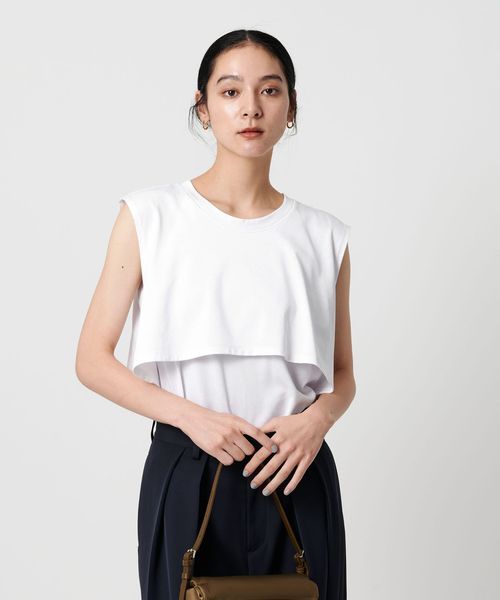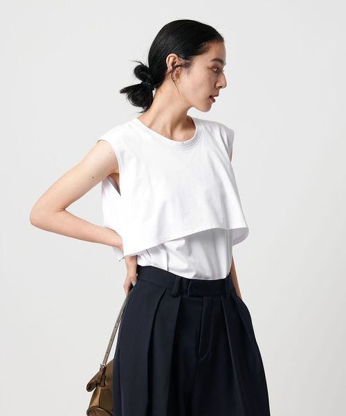 【Wardrobe DAILY MINIMAL】フリルレイヤード ノースリーブカットソー 接触冷感 吸水速乾