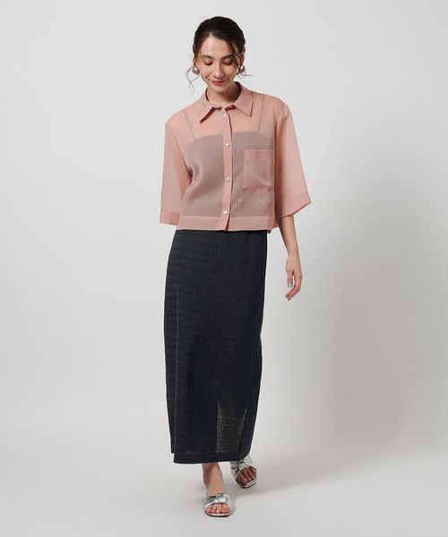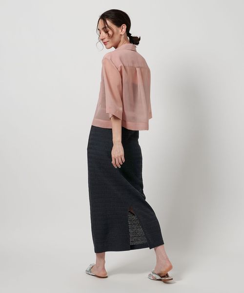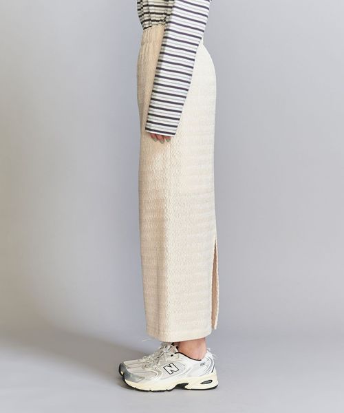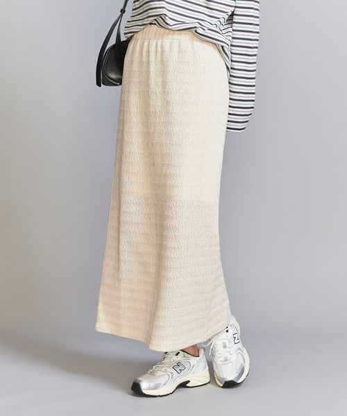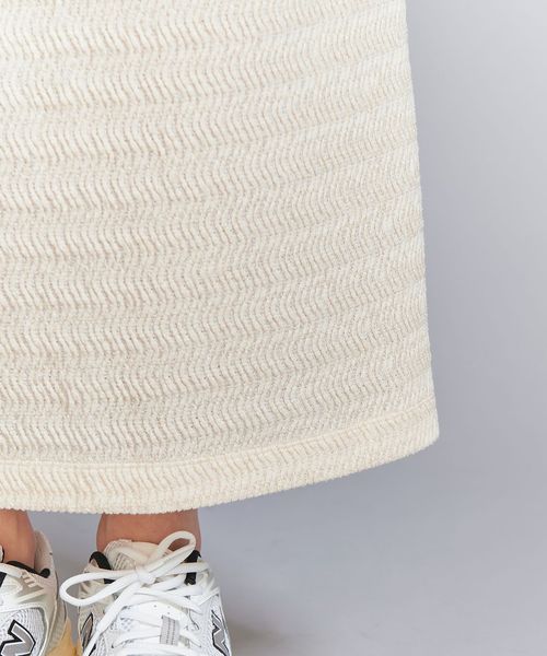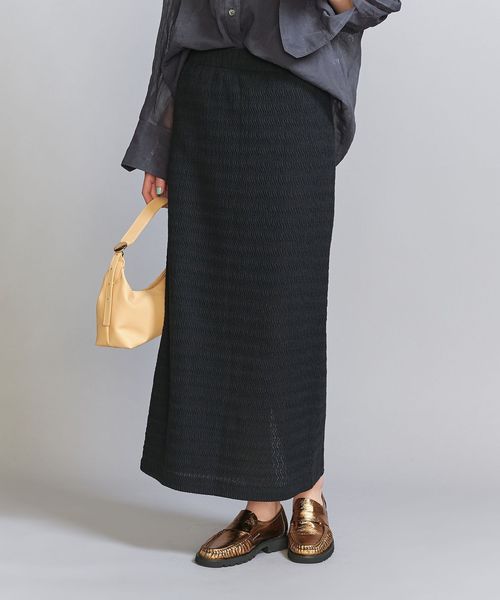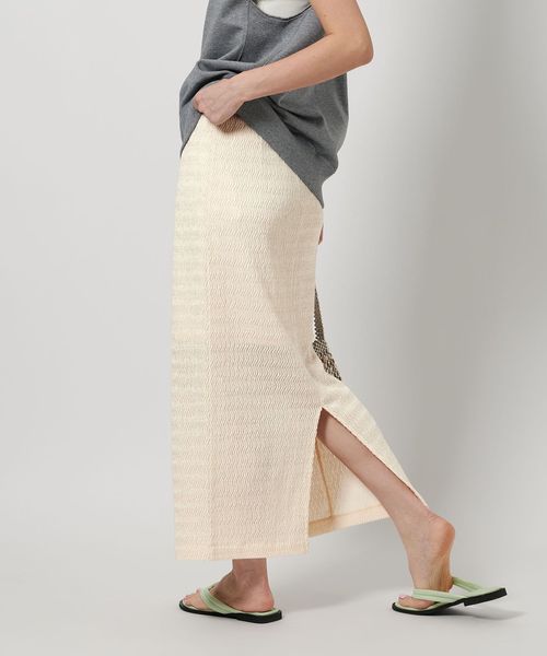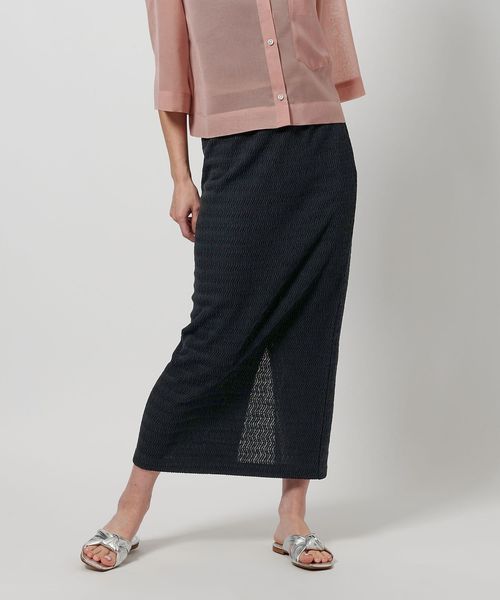 表情豊かなラッセル素材が目をひくタイトスカート。