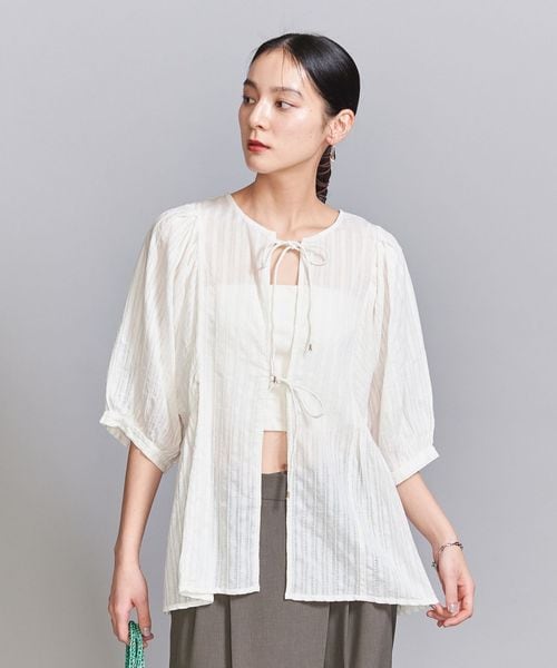 タンクトップやキャミソールと合わせて、さりげないシアー感を活かしたコーディネートがおすすめです。