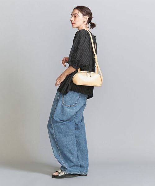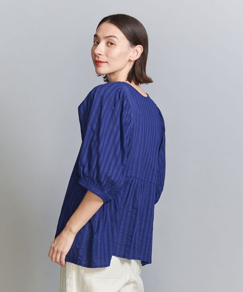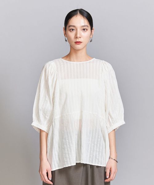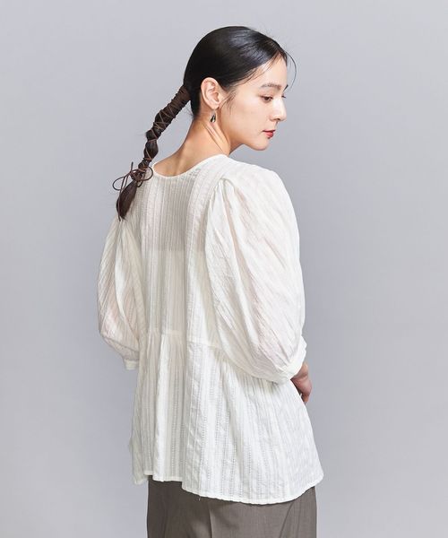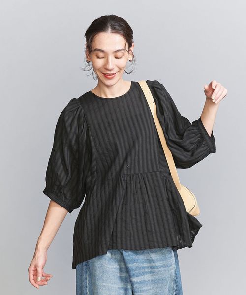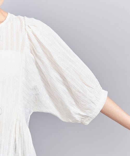 ペプラムラインの切り替えでフェミニンなシルエットながらも、ドビーの織柄でカジュアルさをプラスした大人の抜け感漂う仕上がり。