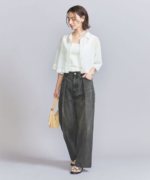 タイトなリブニットとのメリハリのある着こなしや、シアーシャツを合わせたヘルシーな装いが春夏にはおすすめ。