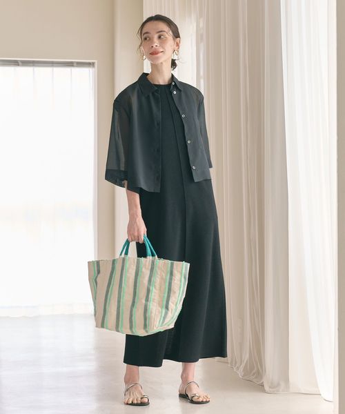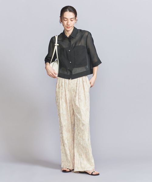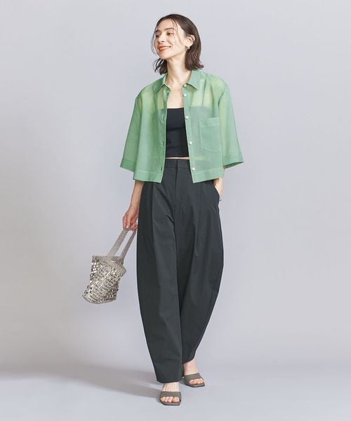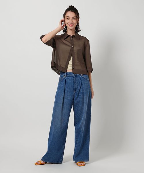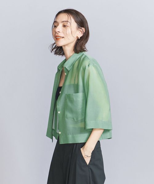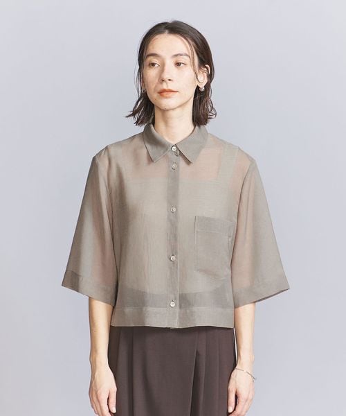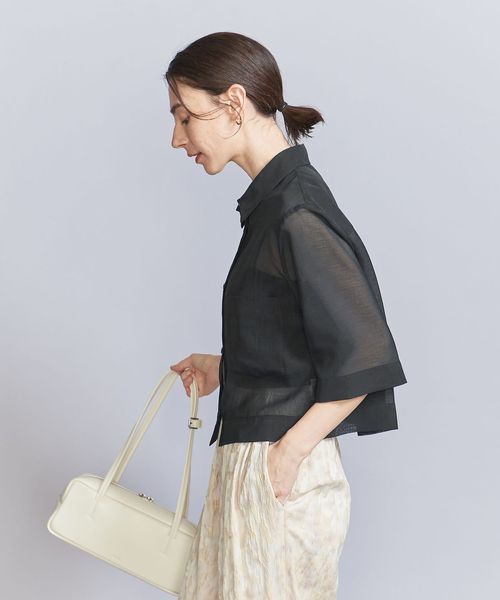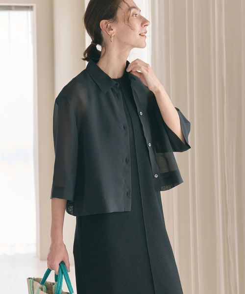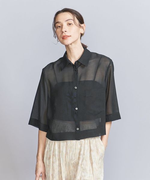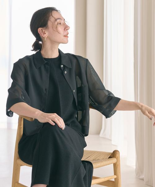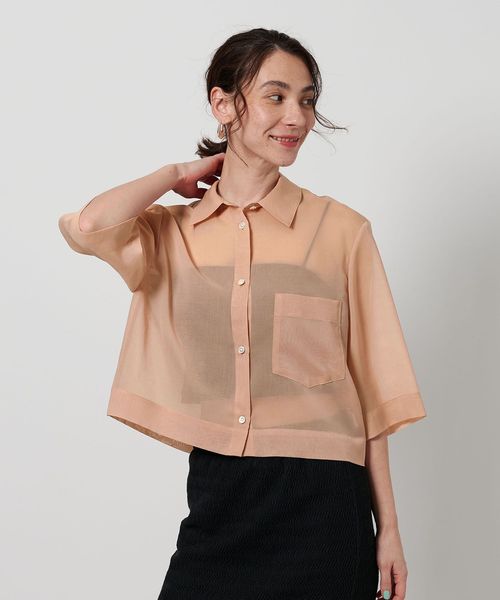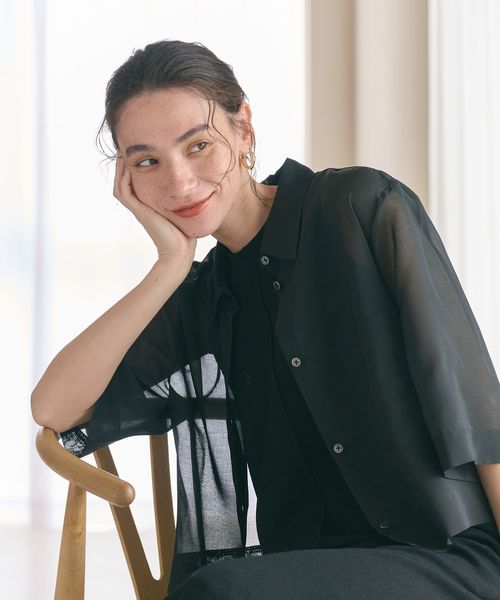 透け感&ショート丈で旬を楽しむ、大人カジュアルなシアーシャツ。
