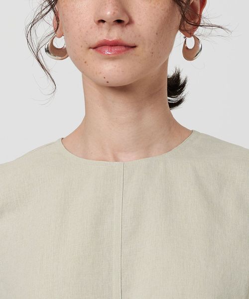 ドライタッチなシアー素材で、清涼感のあるリネンライクに仕上げたポリエステル生地を使用。