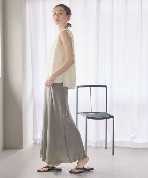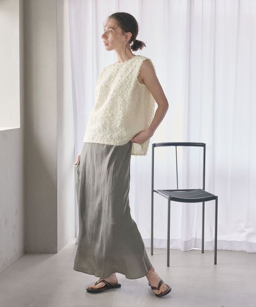 サイドに施したスリットとさりげなく前後差のあるシルエットが、さりげない抜け感をプラス。