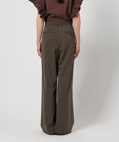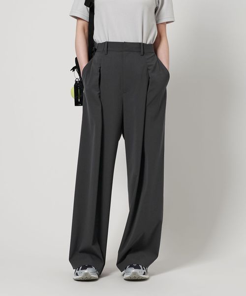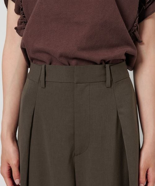 スラックスをリメイクしたようなフロントデザインが特徴のワイドパンツ。