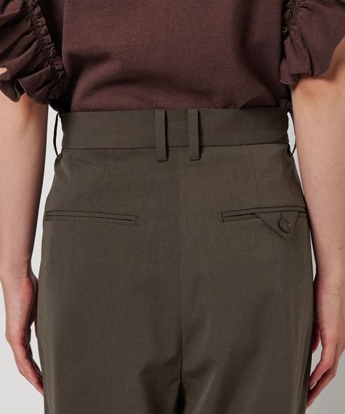 すっきりとした腰周りに、分量感のあるドレープが生み出す抜け感漂うルックスが、ルーズになり過ぎない大人のマニッシュな雰囲気を演出します。