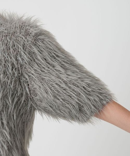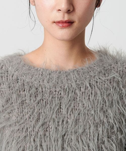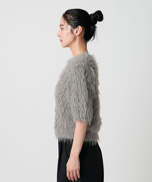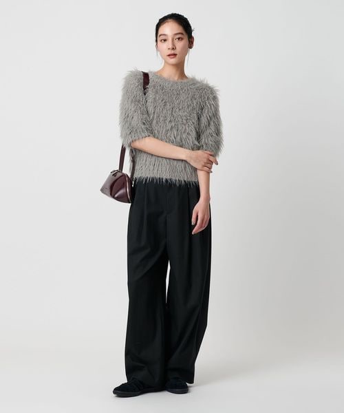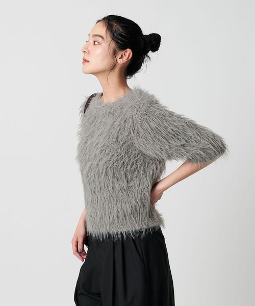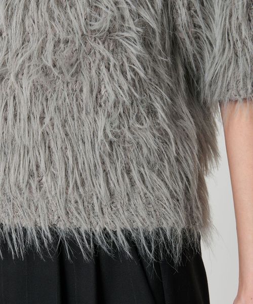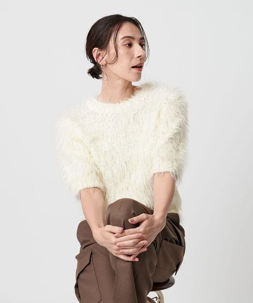 フェザー糸を使用した愛らしい表情が魅力の半袖ニット。