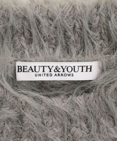 毛足の長いフェザーヤーンと、コットンナイロンのテープヤーンを掛け合わせたミックス感のある素材。