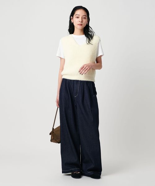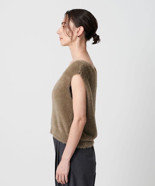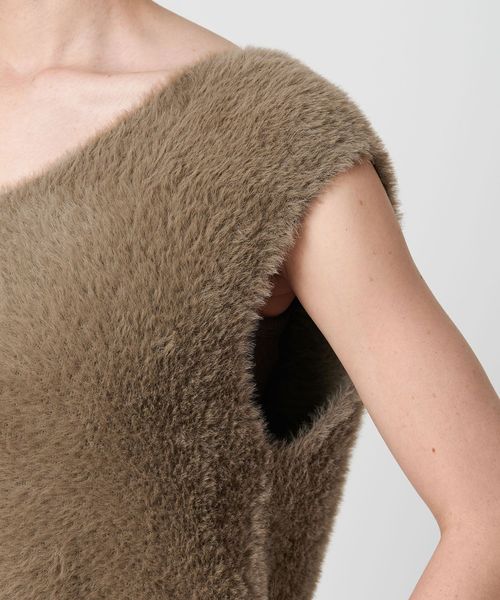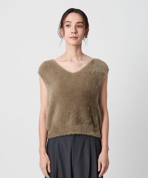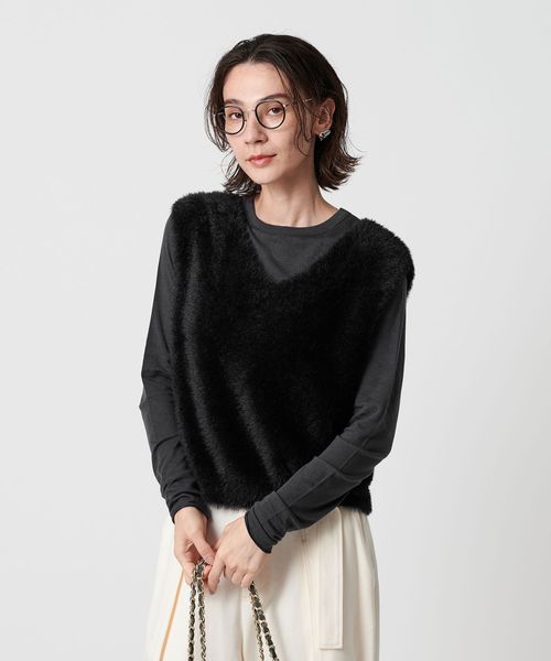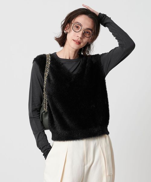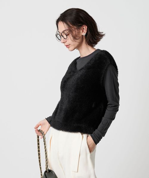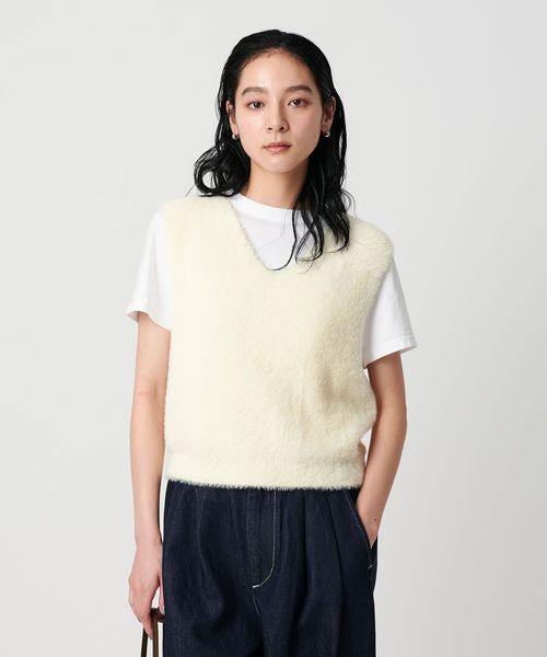 アレンジ次第でロングシーズン活躍。毛足感が愛らしいニットベスト。