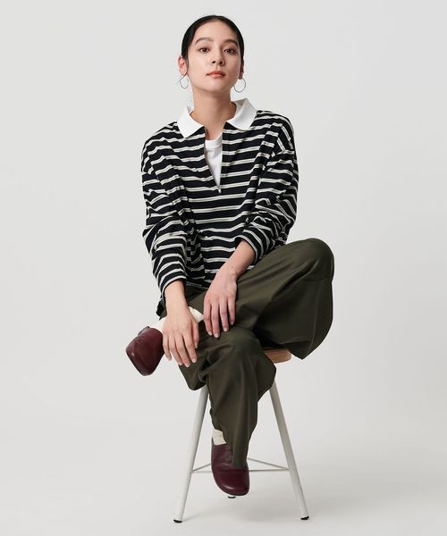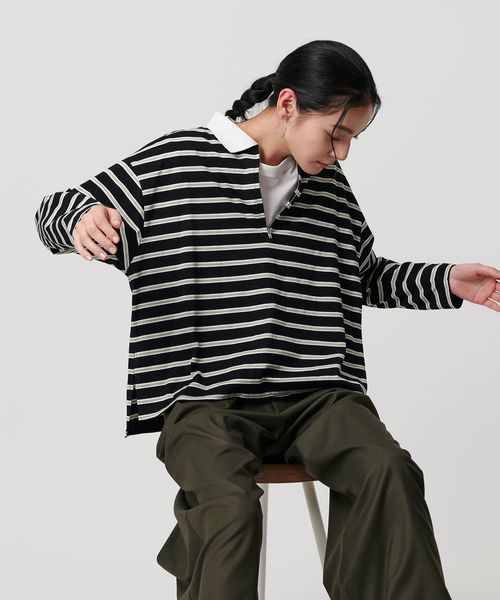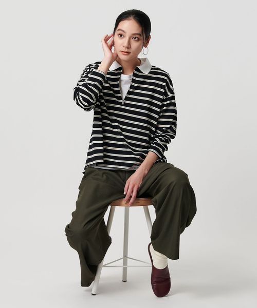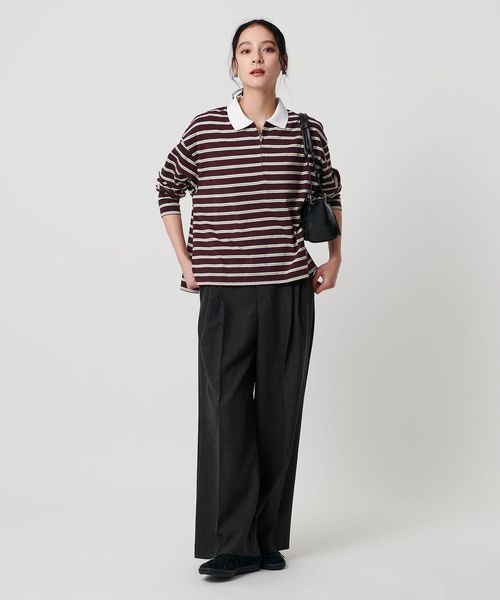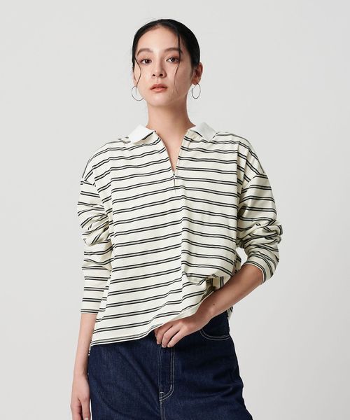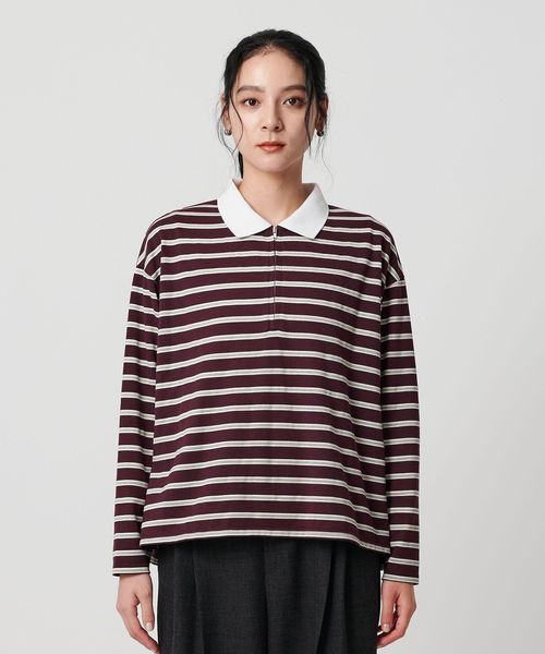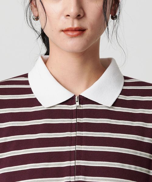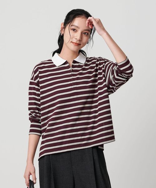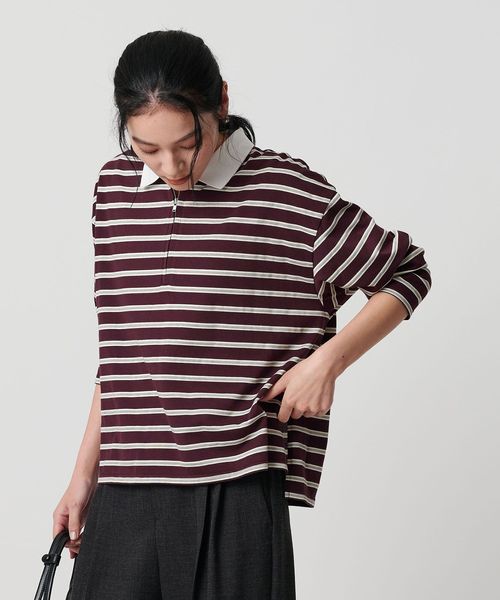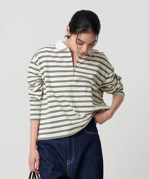 ハーフジップで着こなしアレンジを楽しめるマルチボーダートップス