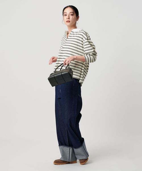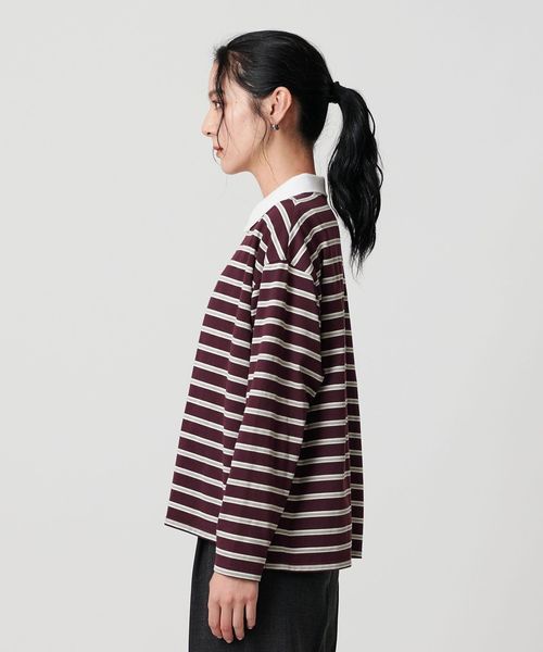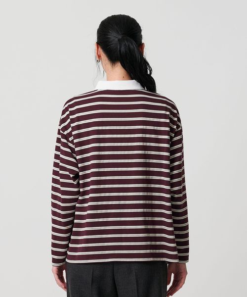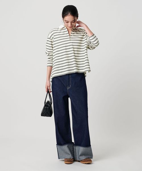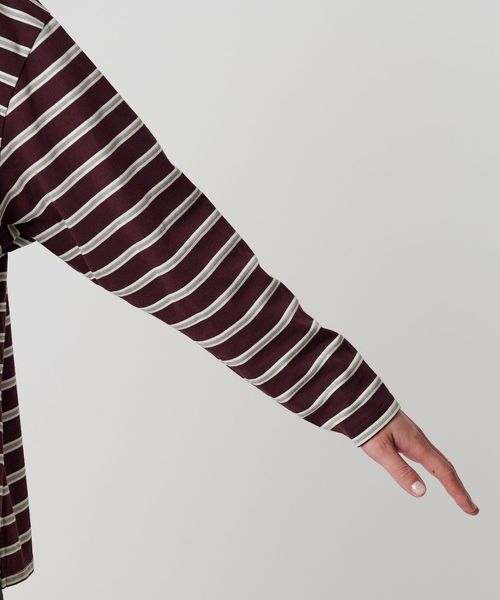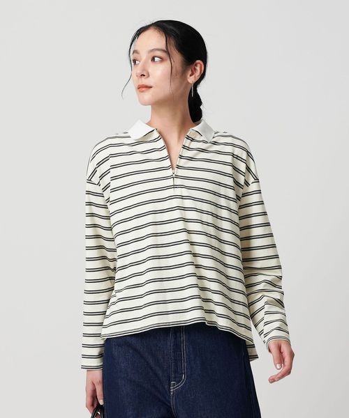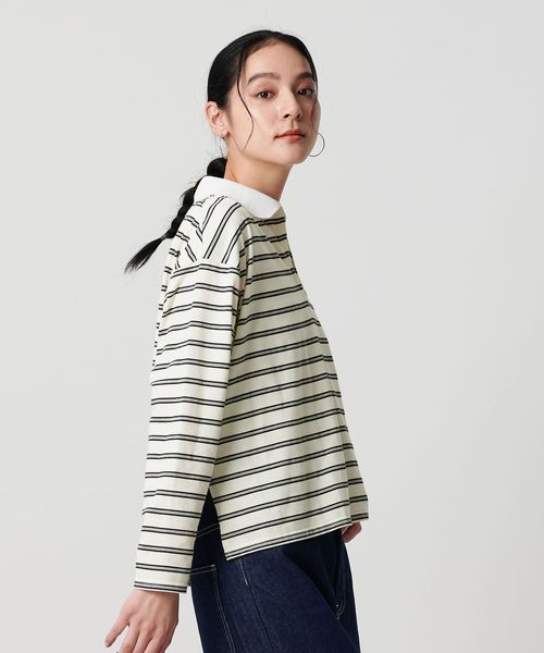マルチボーダーのカットソーにオフホワイトのレギュラーカラーがクリーンな印象を与える一枚。
