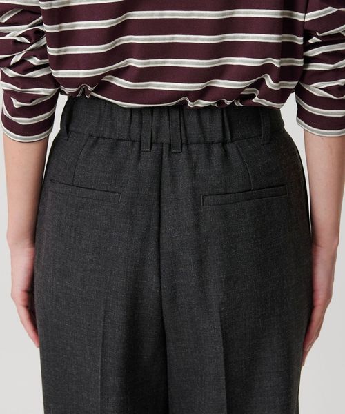 ウエストはフロントをすっきりと見せる見返し仕様で、きちんと感をキープしながらもバックゴムの快適なはき心地も叶えます。