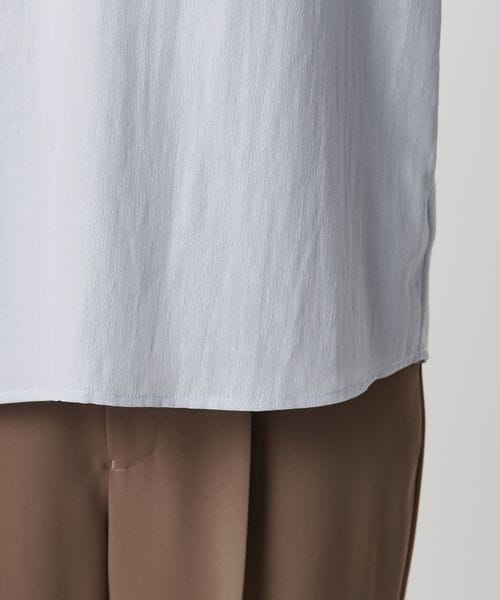 ポリエステルとレーヨンの収縮差によって生まれる、ほどよいシボ感が特徴的な素材を使用。
