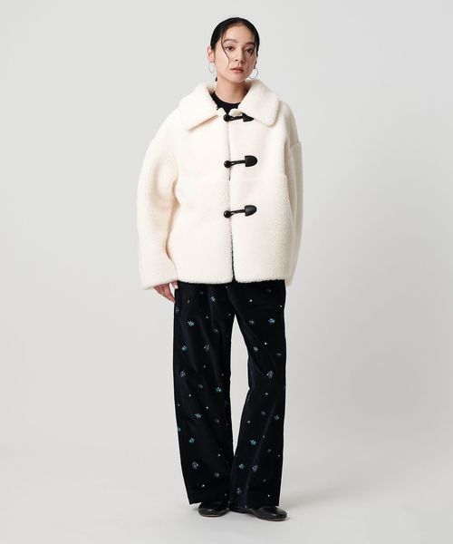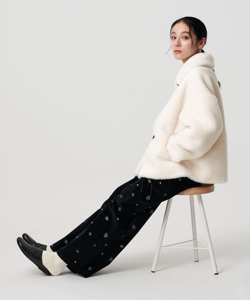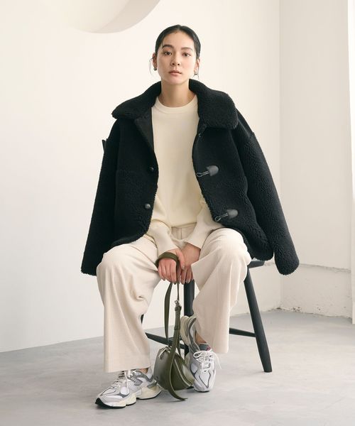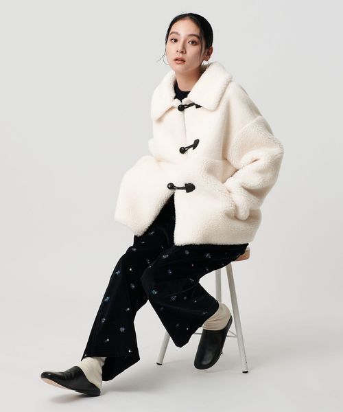 ゆとりのあるサイジングやボアのふんわりとした素材感が見た目にも暖かく、華やかな印象に導きます。