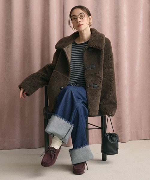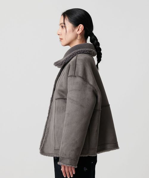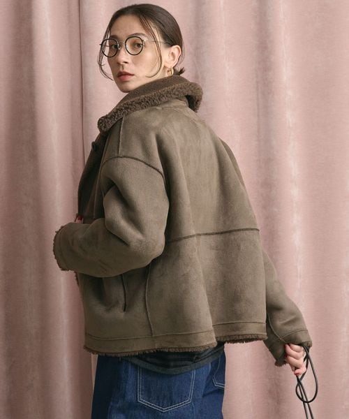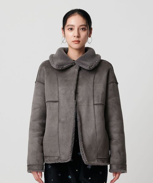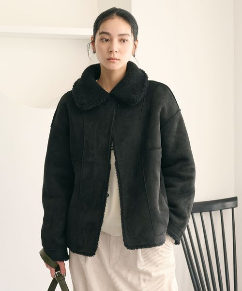 毛足で切り替えたボアと滑らかな質感が魅力のフェイクムートンで、一枚で異なる表情を楽しめるアイテム。