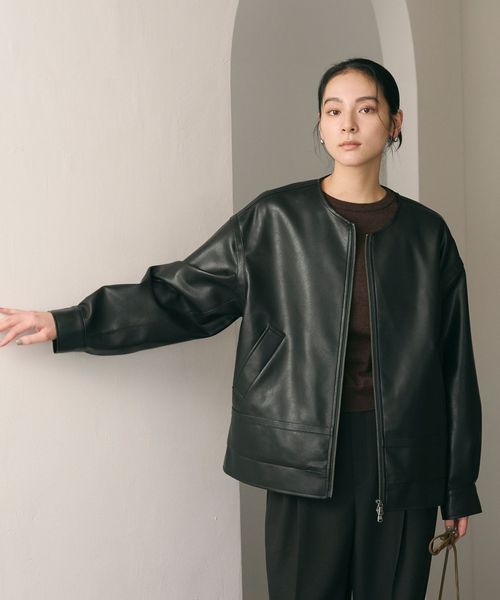 上品さと機能性を両立。気分で選べる2WAYレザーライクブルゾン