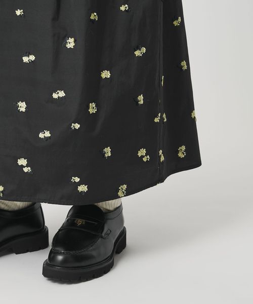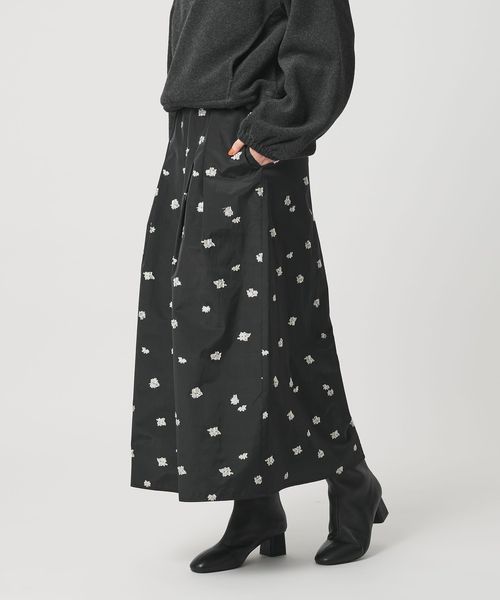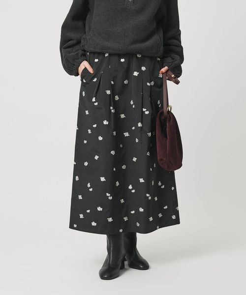 花柄のカットジャガードをポイントにしたAラインスカート。