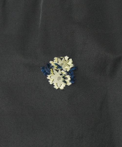 コーディネートに馴染みやすいブラックベースの生地に小振りのサイズで仕上げたオリジナルの柄が、コーディネートに華やかさをプラスしてくれます。
