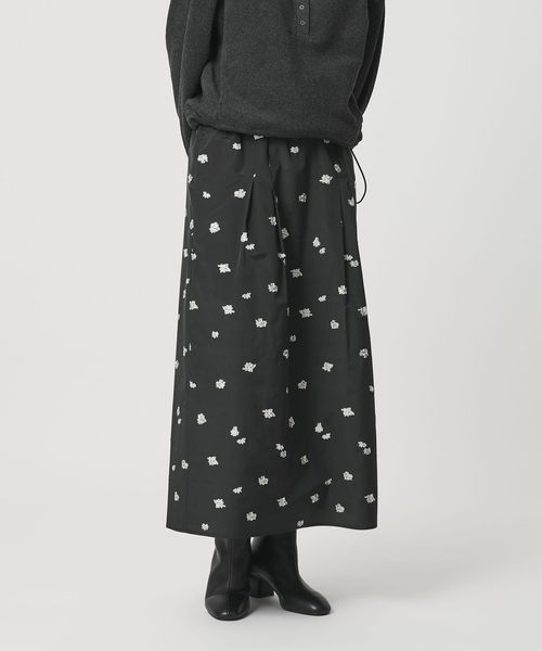 花柄のカットジャガードをポイントにしたAラインスカート。