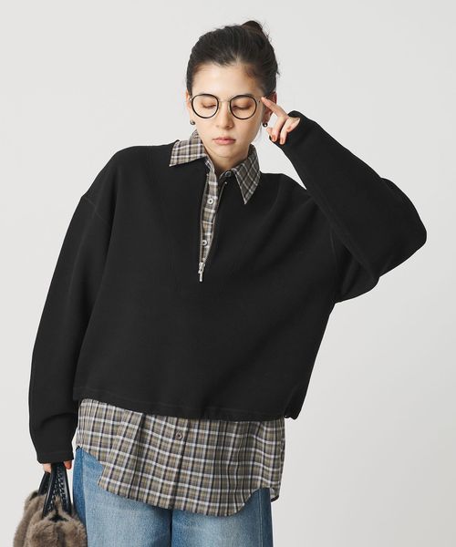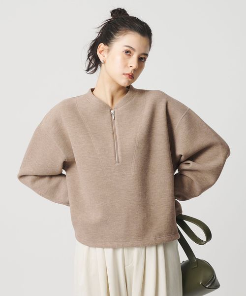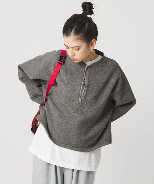 ジップアレンジを楽しみたい、旬顔ハーフジッププルオーバー。