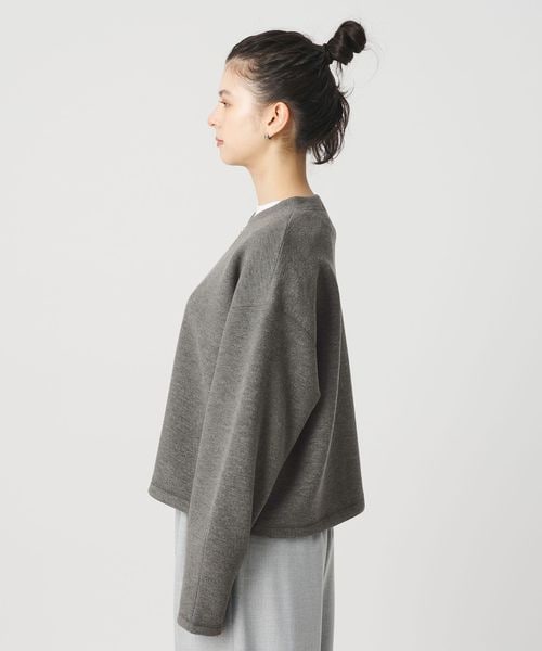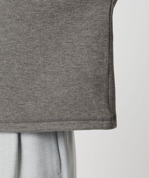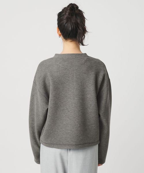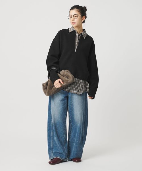 カジュアル過ぎないすっきりとした首元は、インナーアレンジからマフラーなど冬小物との合わせも様になります。