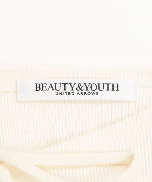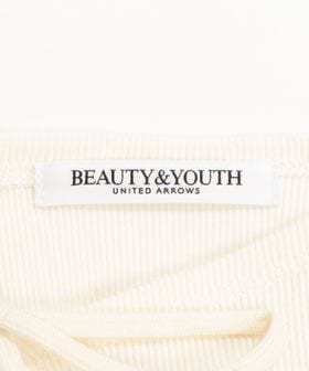 首元のカッティングとリボンが目を引くリブカットソー。