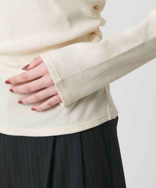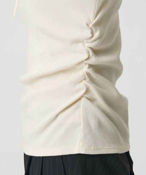 ウエスト周りに立体感が出て着こなしのアクセントになるサイドギャザー入り。