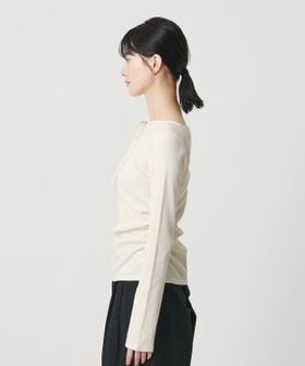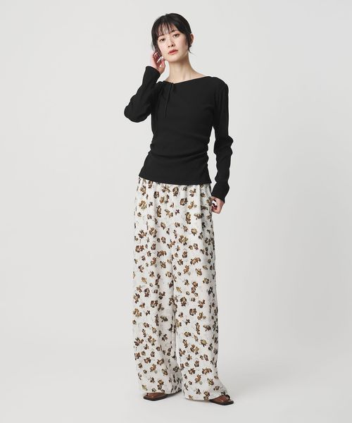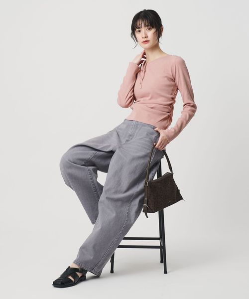 フェミニンなデザインは、ワイドシルエットのスラックスやデニムなどカジュアルボトムと合わせていただくのがおすすめ。