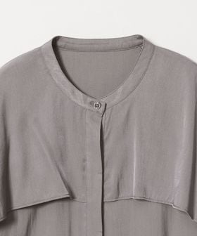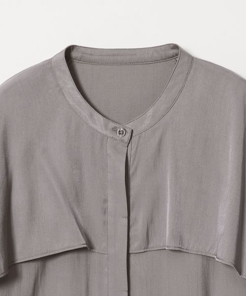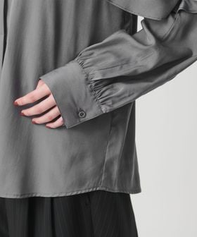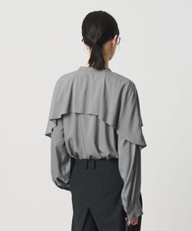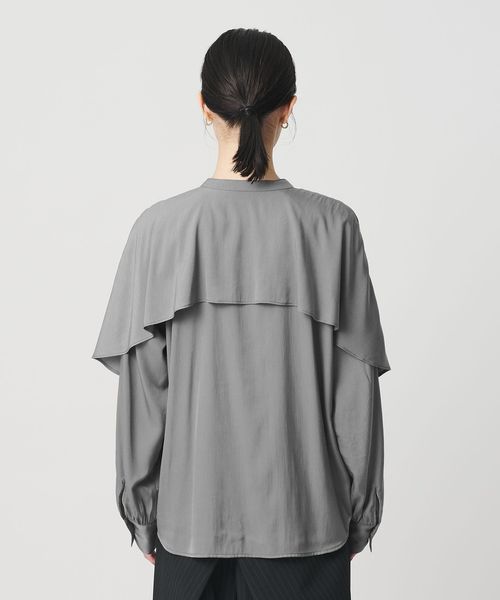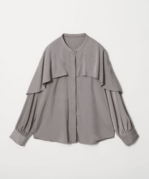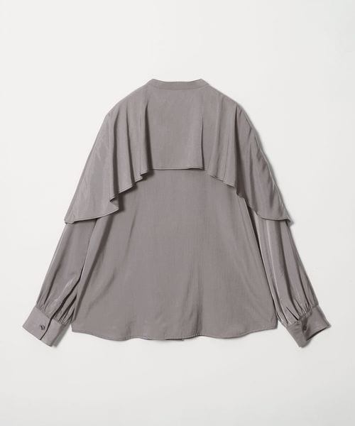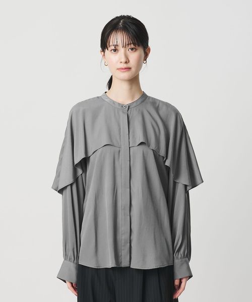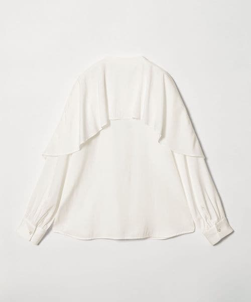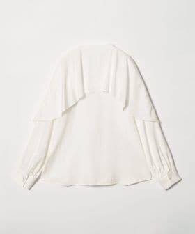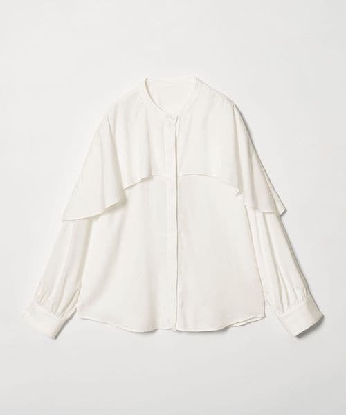 動きのあるケープ風のフリルが印象的なデザインブラウス。
