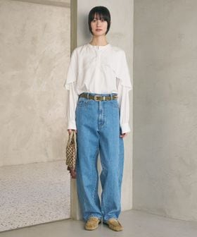 端正なルックスながらも、シャンブレーの風合いがこなれ感を演出し、ほどよく力の抜けた大人のフェミニンカジュアルスタイルが叶います。