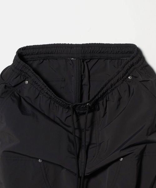 ナイロン素材を使用したワークムード漂うワイドパンツ。