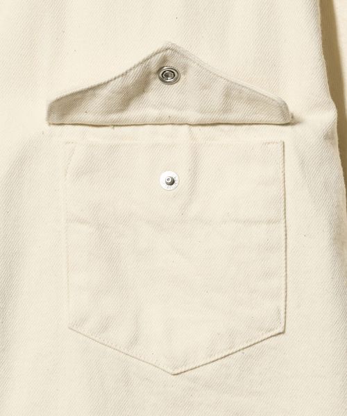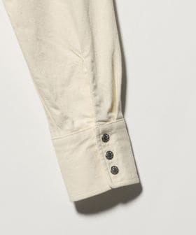 ヨークやフラップポケット、カフスの3連ボタンなどウエスタンディテールが目を引くデザイン。