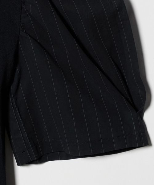 ストライプ柄の別布がアクセントになった袖は、ギャザーとタックが施された立体感のあるシルエットが目を引きます。