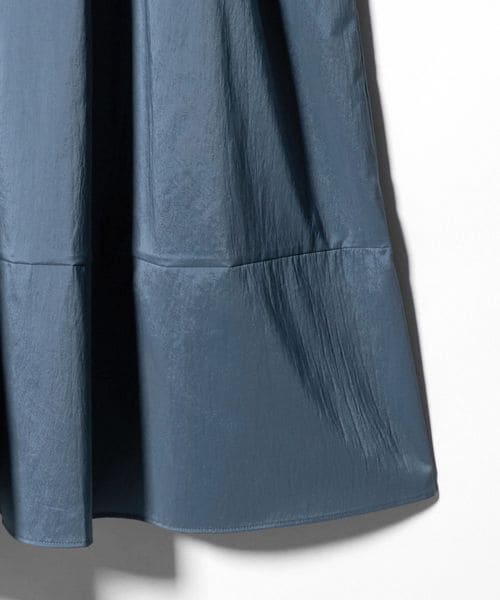 光沢感とゆったりとしたシルエットが魅力のワンピース。