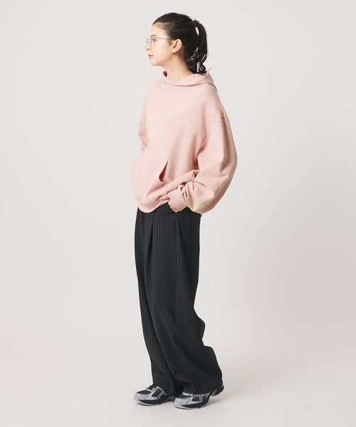 メンズのフーディのように身幅や袖はゆったりとしながらも、着丈は女性が着やすい長さに仕上げています。