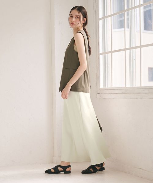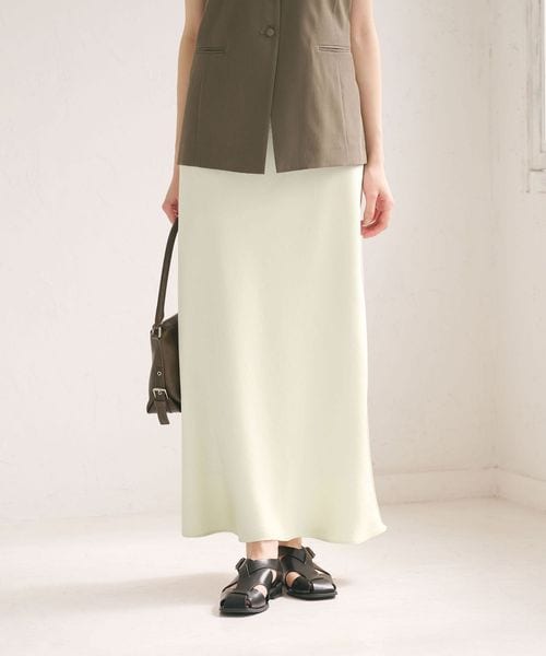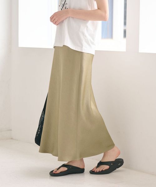 しなやかなマーメイドラインが品の良さを漂わせるサテンフレアスカート