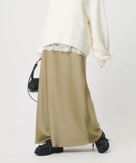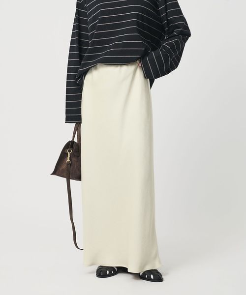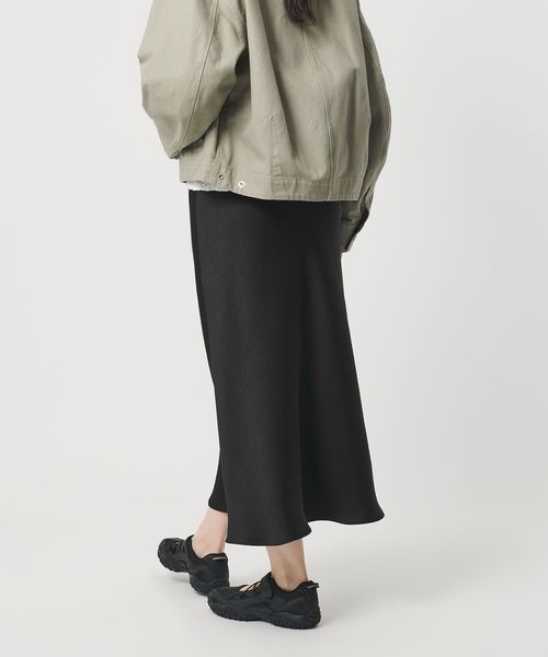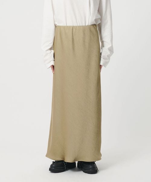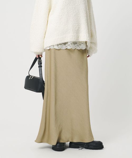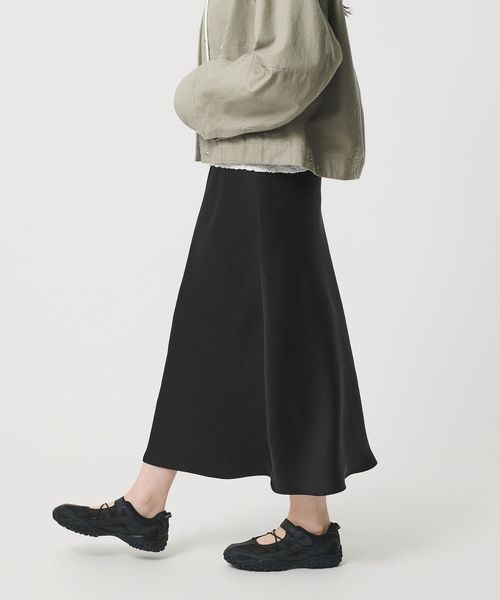 しなやかなマーメイドラインが品の良さを漂わせるサテンフレアスカート