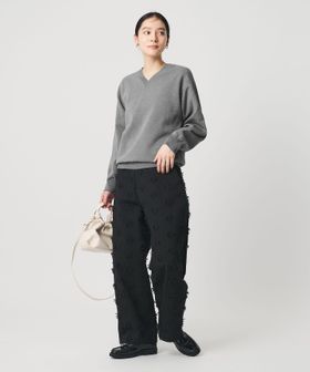 コットンブレンド Vネックニットプルオーバー ウォッシャブル