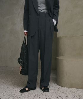 太めのベルトループや深めのインタックを施してきれいめながら抜け感もあり、単品使いでも映える一着に仕上げました。