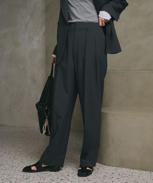 梳毛調生地を使用した2タックのテーパードパンツ。