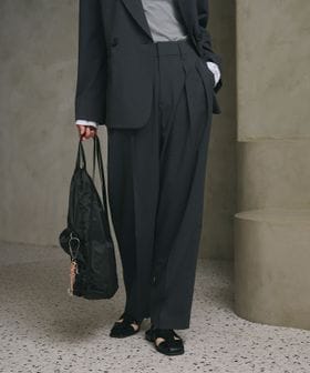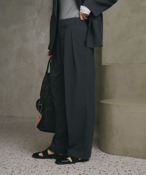 太めのベルトループや深めのインタックを施してきれいめながら抜け感もあり、単品使いでも映える一着に仕上げました。