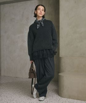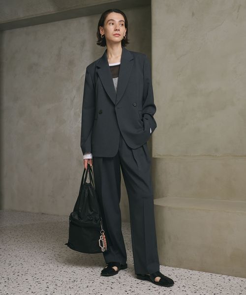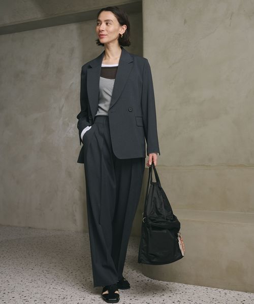 同素材のジャケットやジレとのセットアップはもちろん、ロングシーズンはきやすい素材で単品使いもおすすめです。