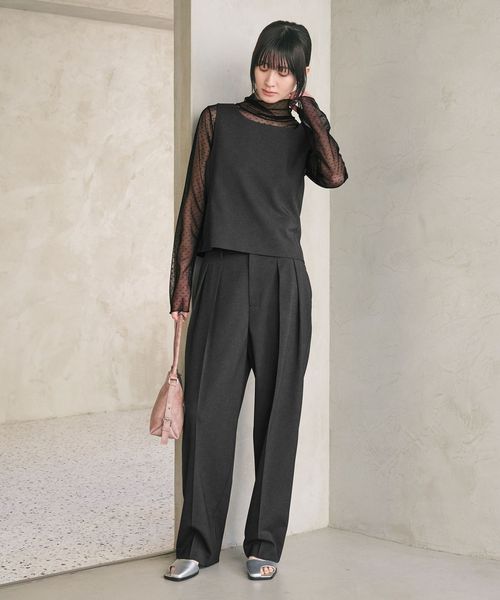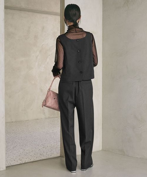 同素材のパンツと合わせてオールインワンのように見せたり、ジャケットもプラスした3ピースのクラシックな装いもおすすめです。