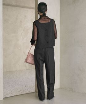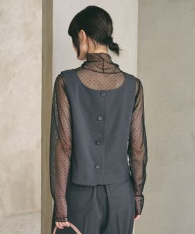 スクエアネックでレディライクなムードが薫るベスト。
